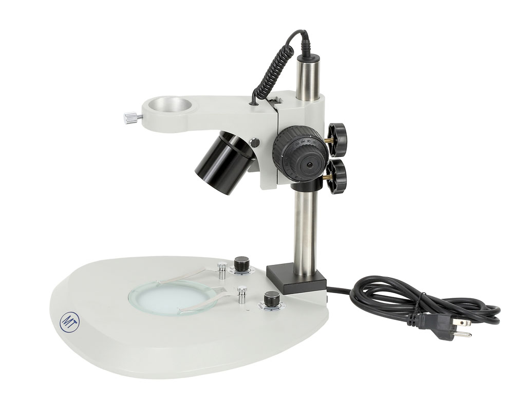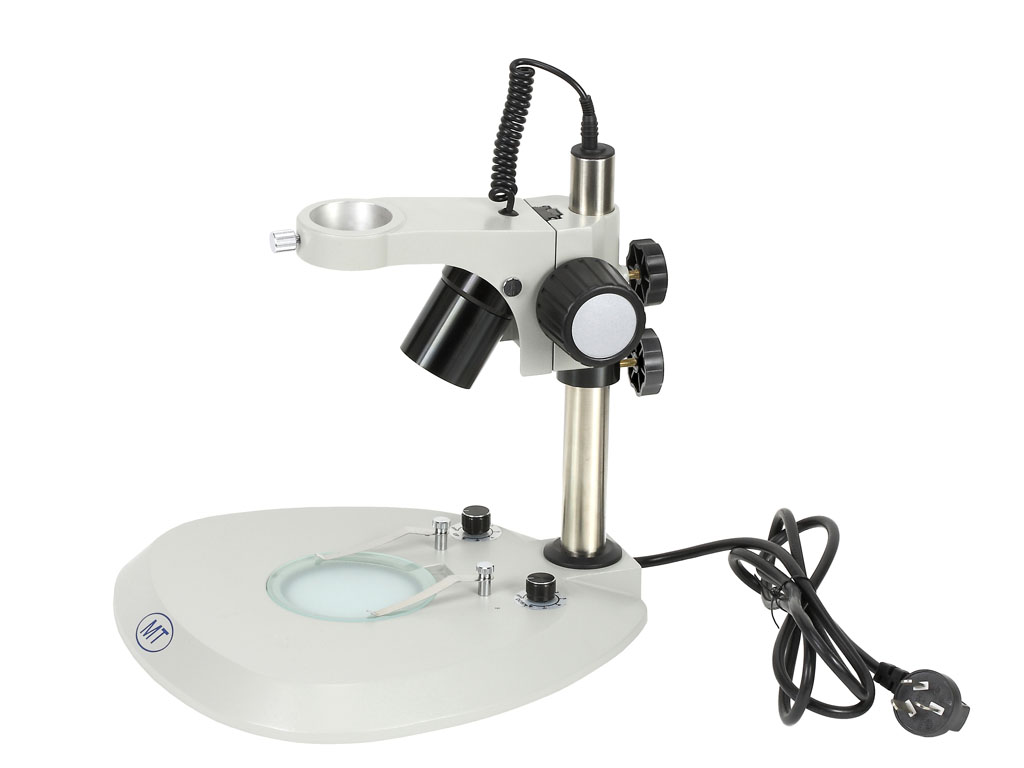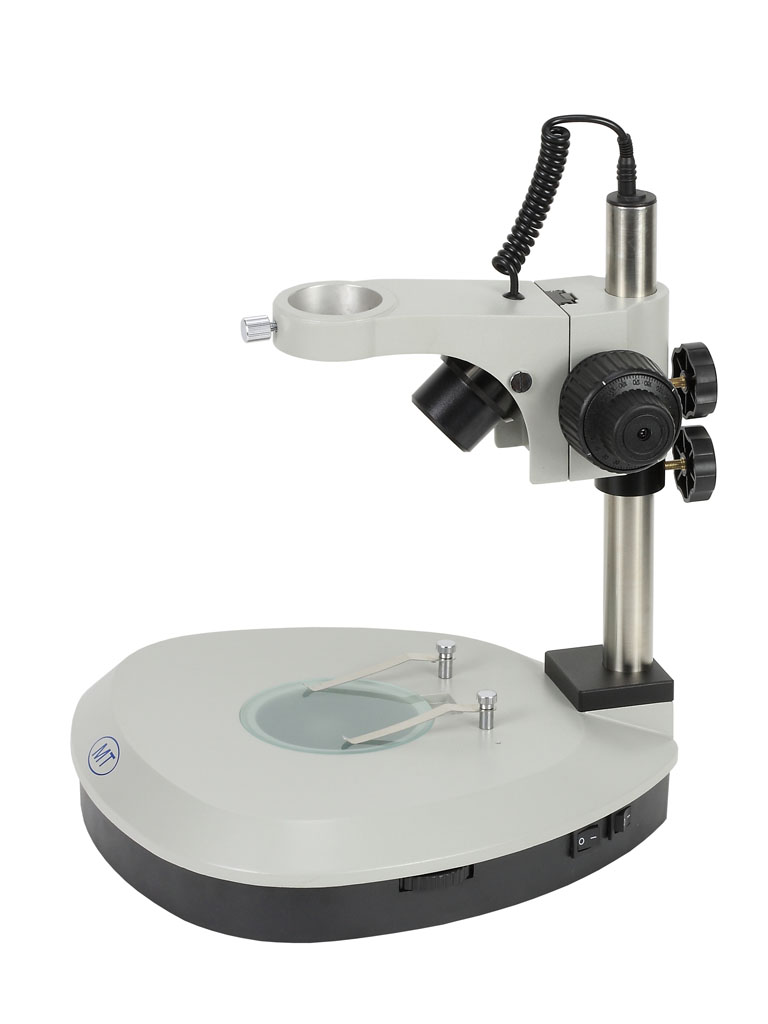 型號名稱:SD4-D底座組 說明: ● 鏡架內置可調角度、可調亮度6V/10W帶反光杯鹵素上光入射照明光源 ● 底座內置110V或220V/5W熒光燈下光透射照明 ● 可單獨使用或者同時使用上光源或下光源照明,分離式各種插頭電源線 ● 鏡體安裝孔直徑Φ45mm ● 方立柱調焦范圍100mm ● 中心工作臺直徑Φ95mm