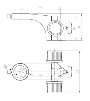 型號名稱:SF10升降組 說 明: ● 粗微調同軸手輪,可調整粗動調節(jié)手輪張力 ● 鏡體安裝孔直徑Φ45mm ● 立柱安裝孔直徑Φ25mm ● 鏡體安裝孔與立柱安裝孔中心距150mm