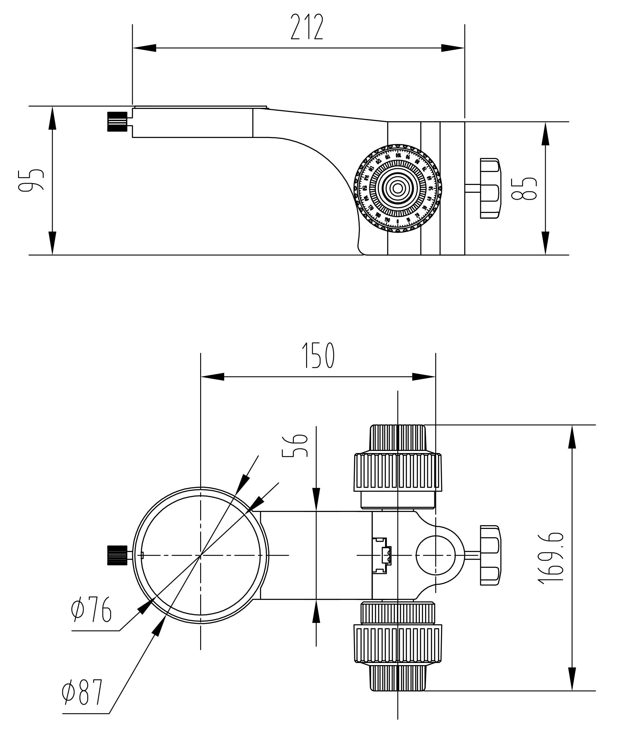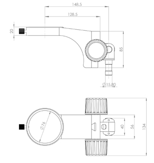 型號名稱:SF9升降組 說 明: ●粗微調同軸手輪,可調整粗動調節手輪張力 ● 立柱安裝孔直徑Φ25mm,鏡體安裝孔直徑Φ76mm, 兩孔中心距150mm