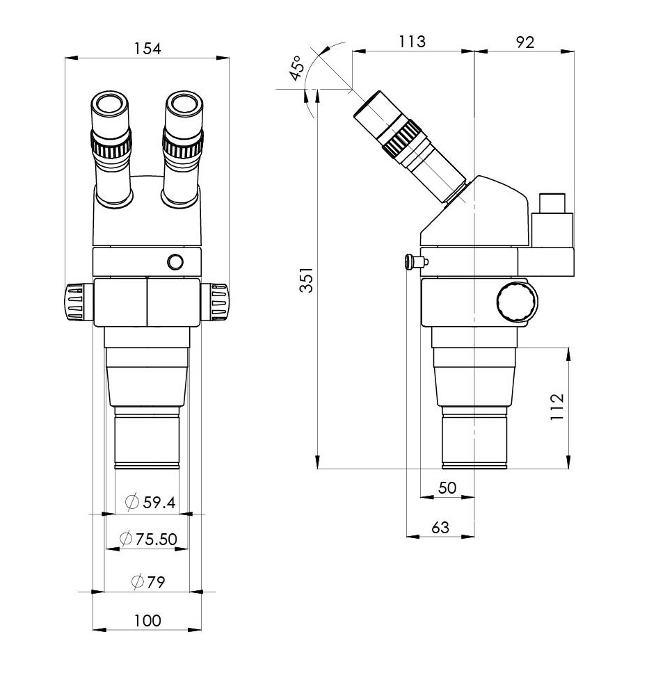 瞳距調節范圍(用10X 目鏡)