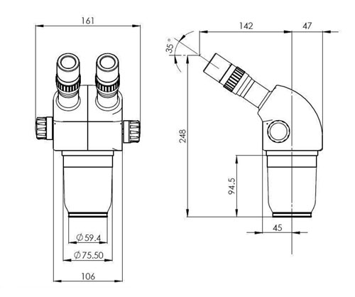 瞳距調節范圍(用10X目鏡)