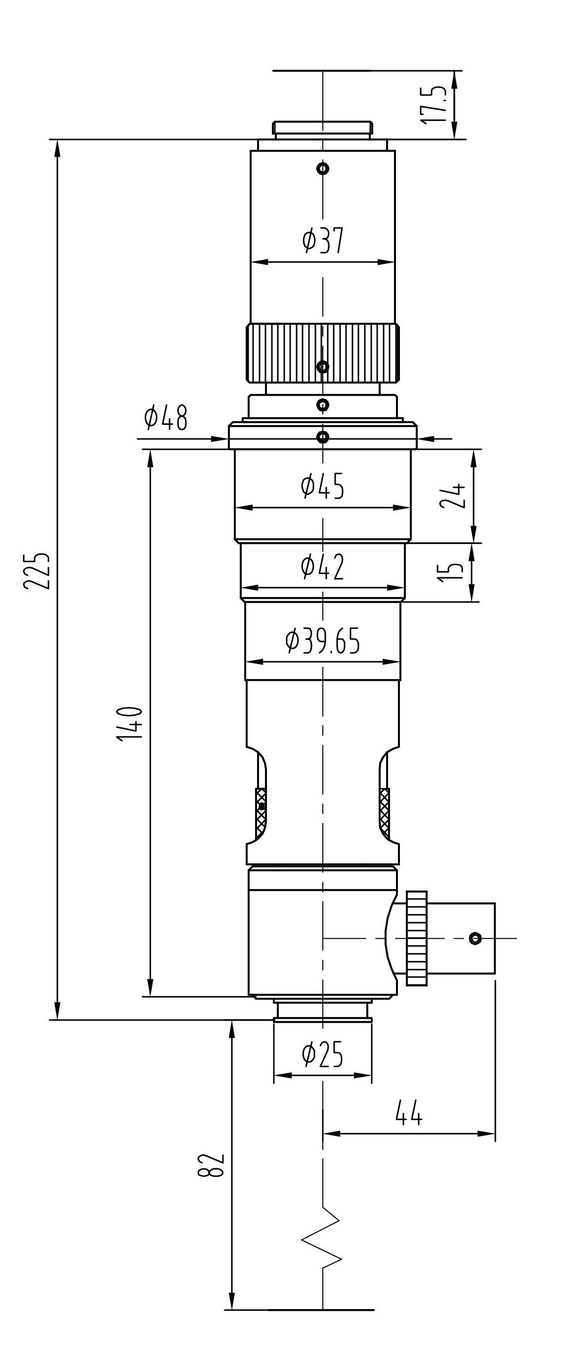 安裝尺寸:Φ45mm 最大兼容相機:1/2" CCD螺紋接口:1英吋32扣